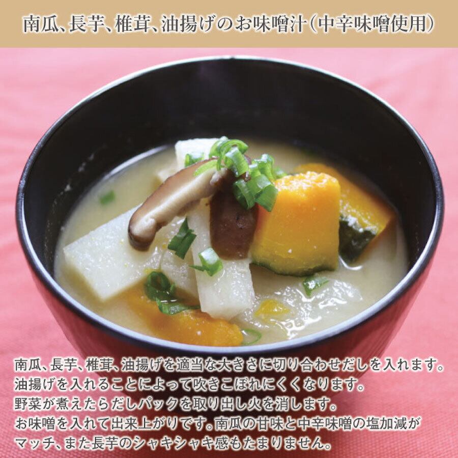 北海道産大豆を使用した合わせ味噌。中辛風味に仕上げてますので、お子様からお年寄りの方まで幅広く飲まれています。